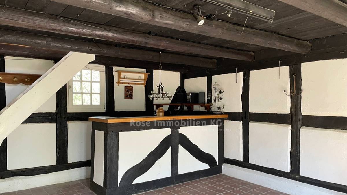 Das weitläufige Grundstück mit altem Baumbestand und einem weiteren Fachwerkgebäude – nutzbar etwa als Atelier, Gästehaus oder Hobbyraum – bietet zahlreiche Möglichkeiten zur Erholung und individuellen Gestaltung.