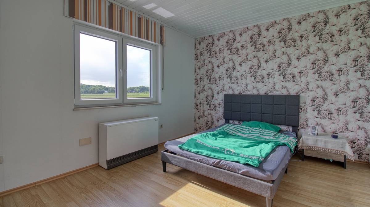 Im Erdgeschoss überzeugt die moderne Küche mit direktem Zugang zum Wintergarten. Dieser wurde mit stilvollen, anthrazitfarbenen Fensterelementen ausgestattet und schafft eine helle, freundliche Atmosphäre mit Blick in den Garten. Von der Küche aus gelangen Sie in den offenen Wohn- und Essbereich, der ein behagliches Zentrum des Hauses bildet. Angrenzend befindet sich ein weiteres Schlafzimmer – ideal als Gäste- oder Elternzimmer. Ein zusätzliches Schlafzimmer rundet das Raumangebot im Erdgeschoss ab.